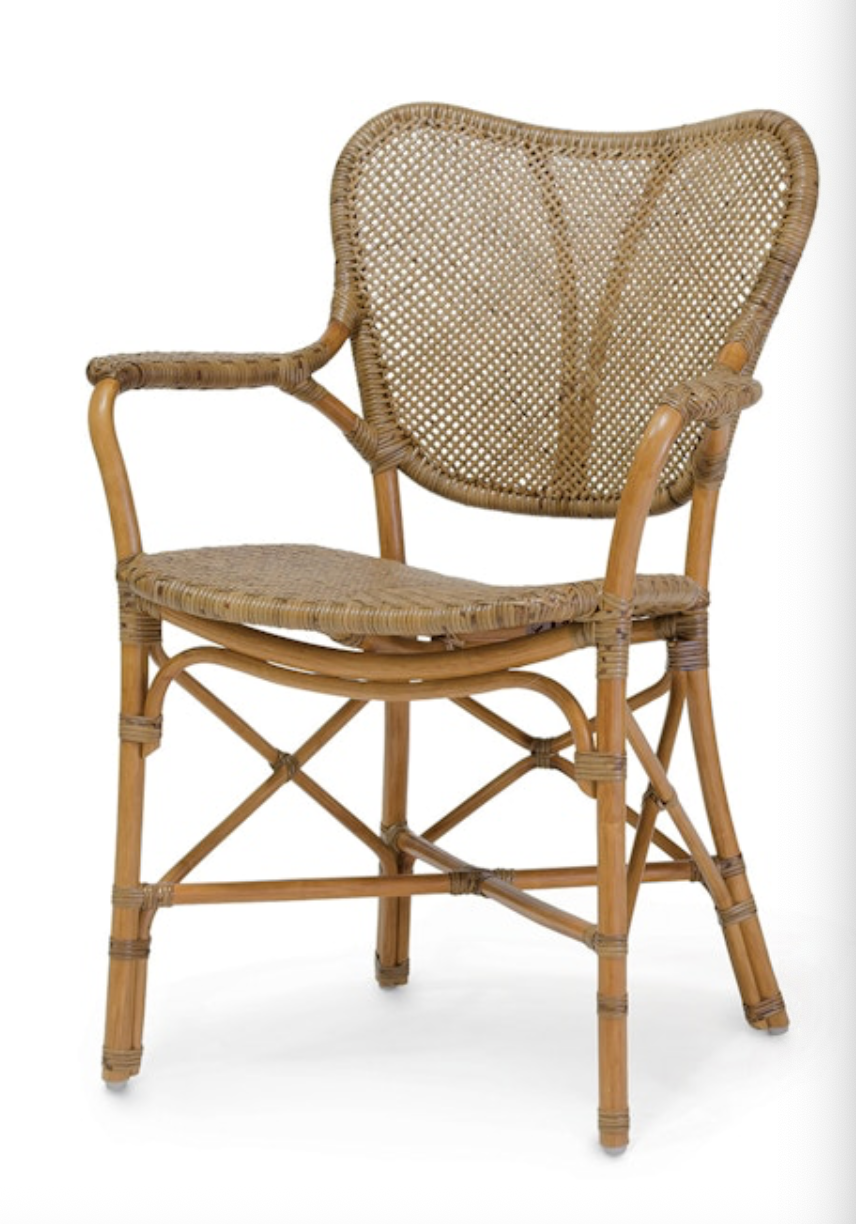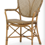 Crafted from handwoven natural rattan, this timeless armchair brings a touch of effortless French charm to any space. Its graceful curved back and sculpted frame highlight the artistry of traditional cane weaving, offering both comfort and sophistication. Perfect for a breakfast nook, garden room, or as an accent chair beside a rustic table, it embodies that relaxed elegance found in countryside cafés and coastal retreats.