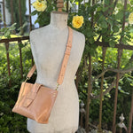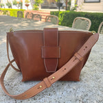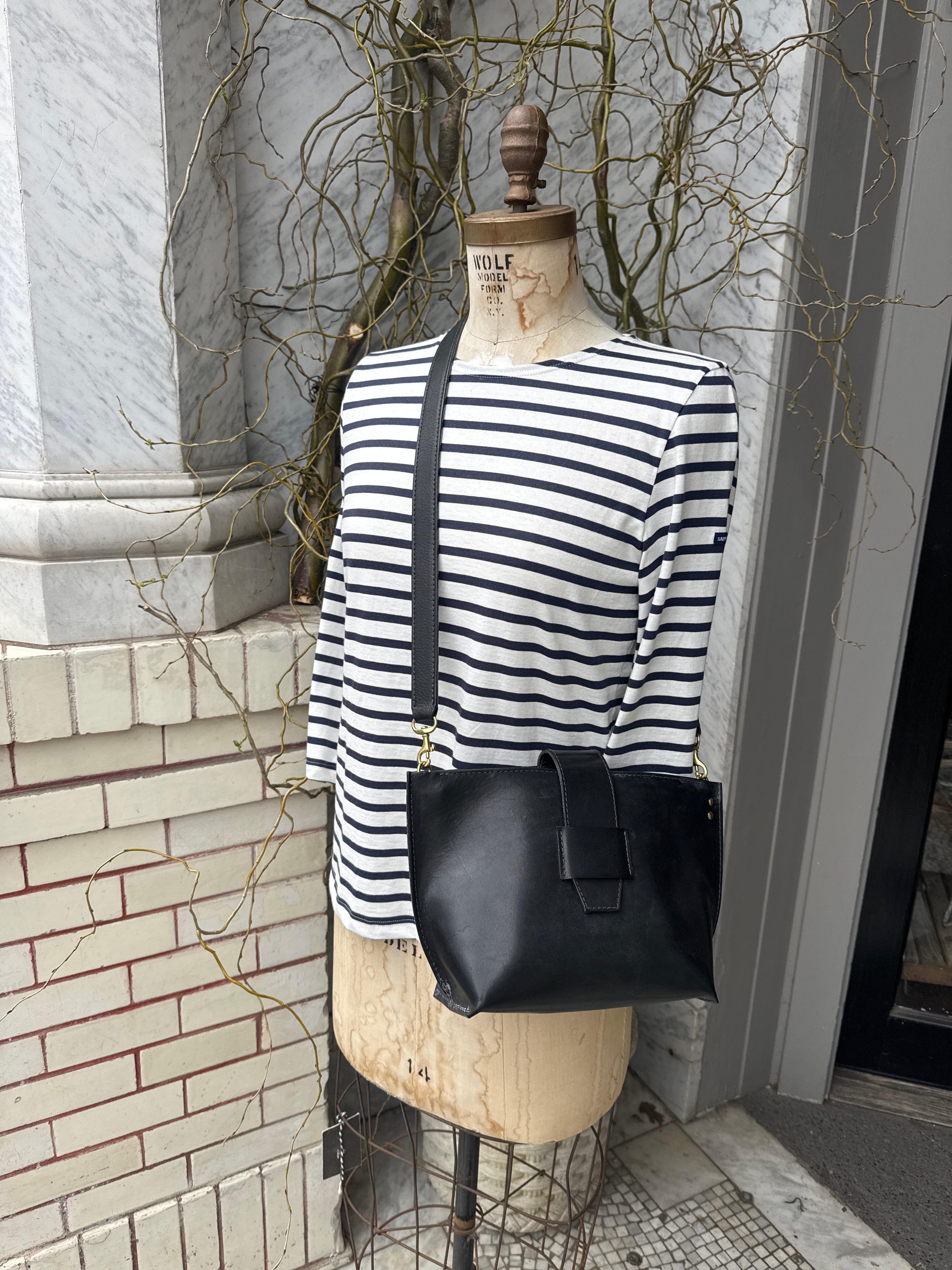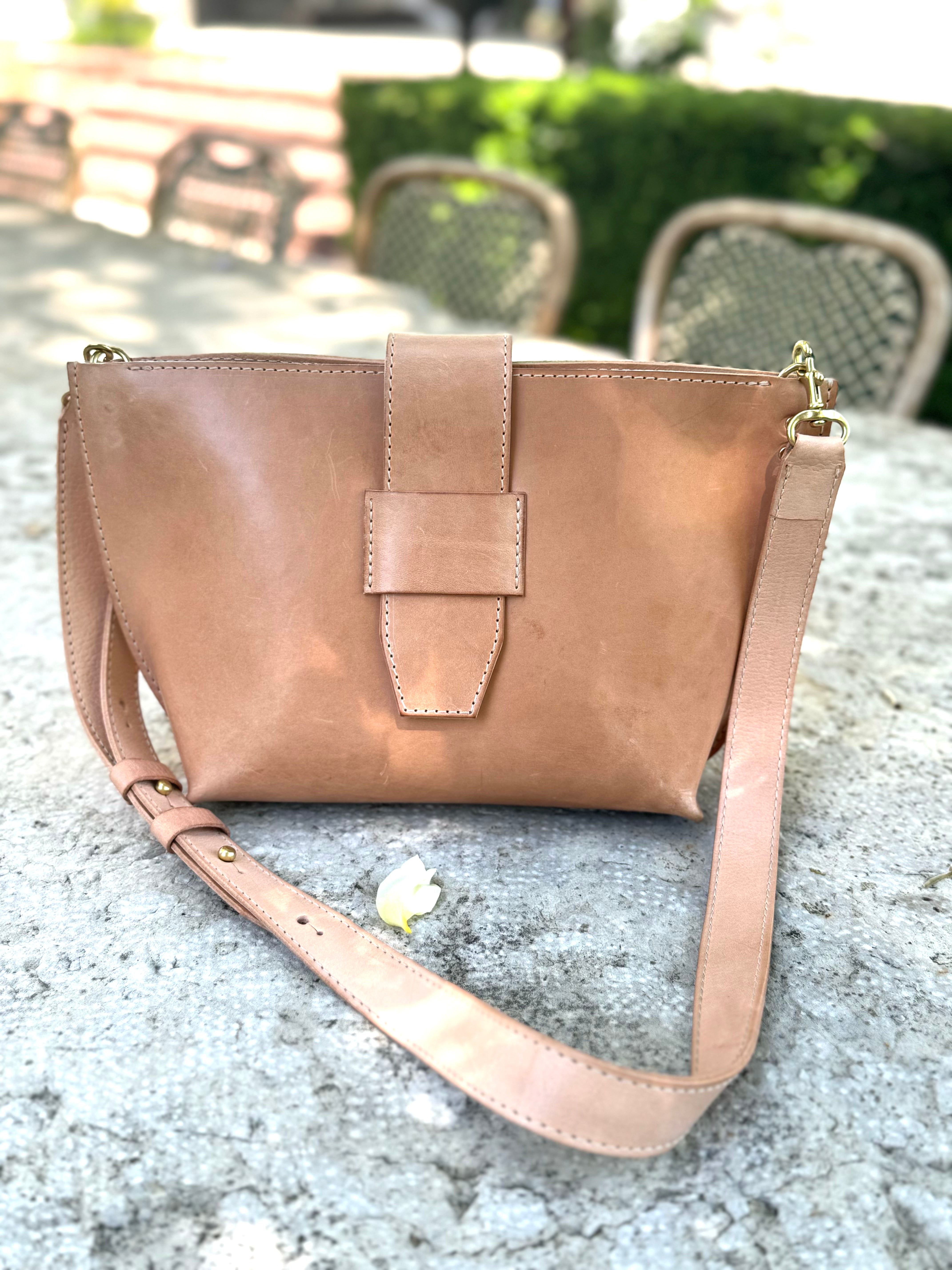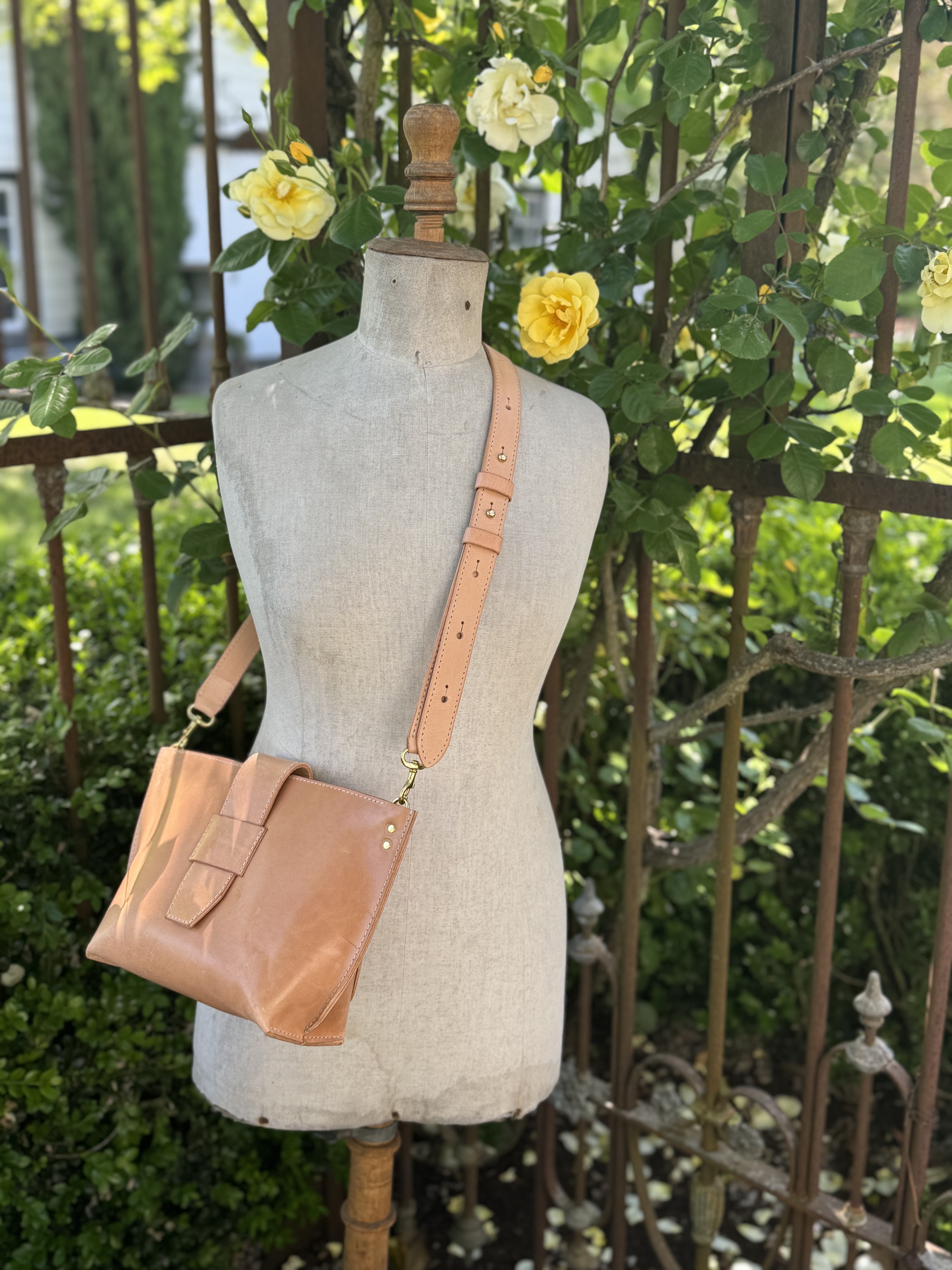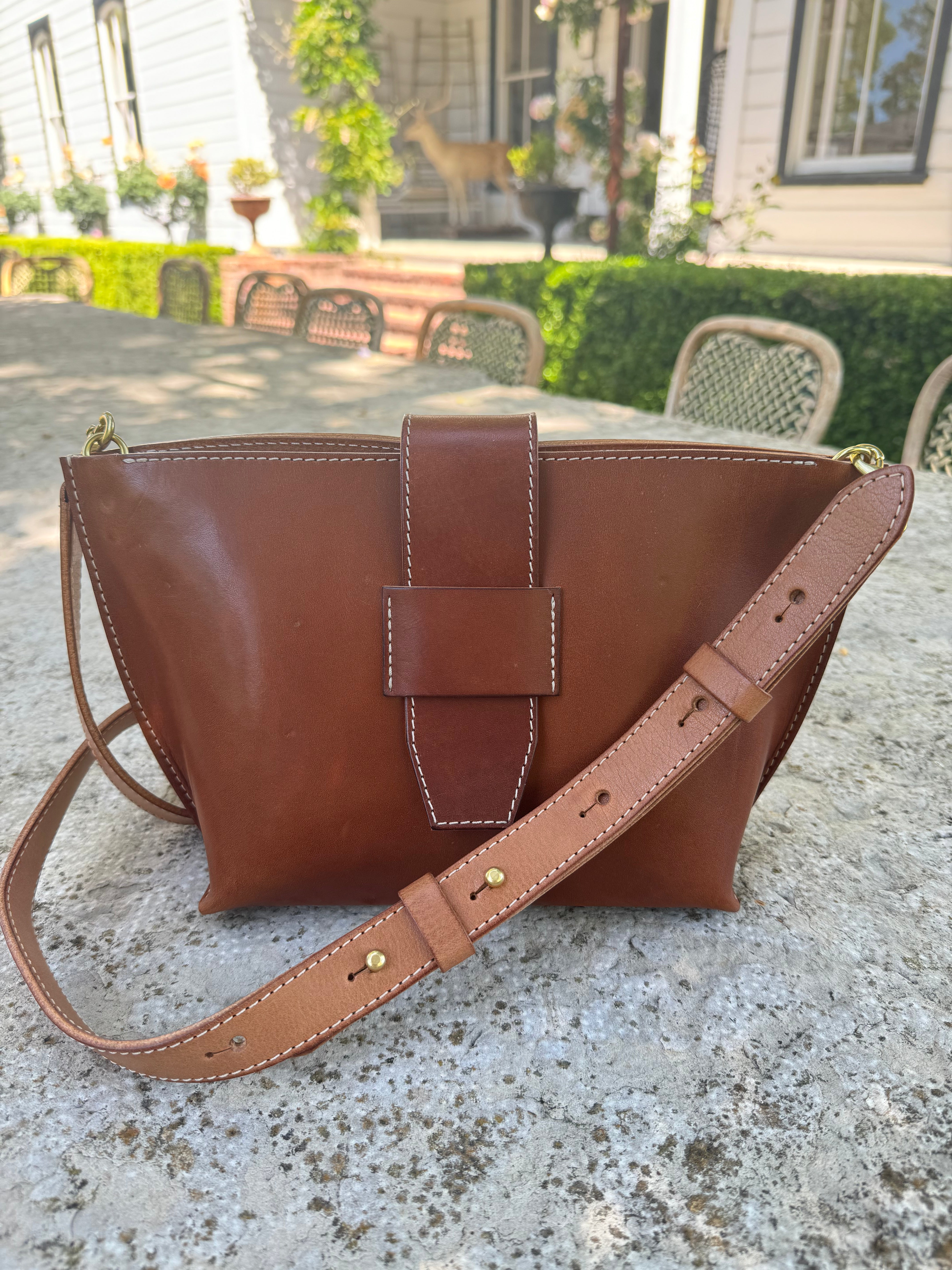 This is our favorite bag ever! It is hand made by Jennifer Conner of Petaluma. She sources the highest quality leather in the USA, they are hand made in Sonoma County and the attention to detail makes it even more special. It has a zipper for extra safety and there are pockets inside for your phone or keys and it is our dream bag.