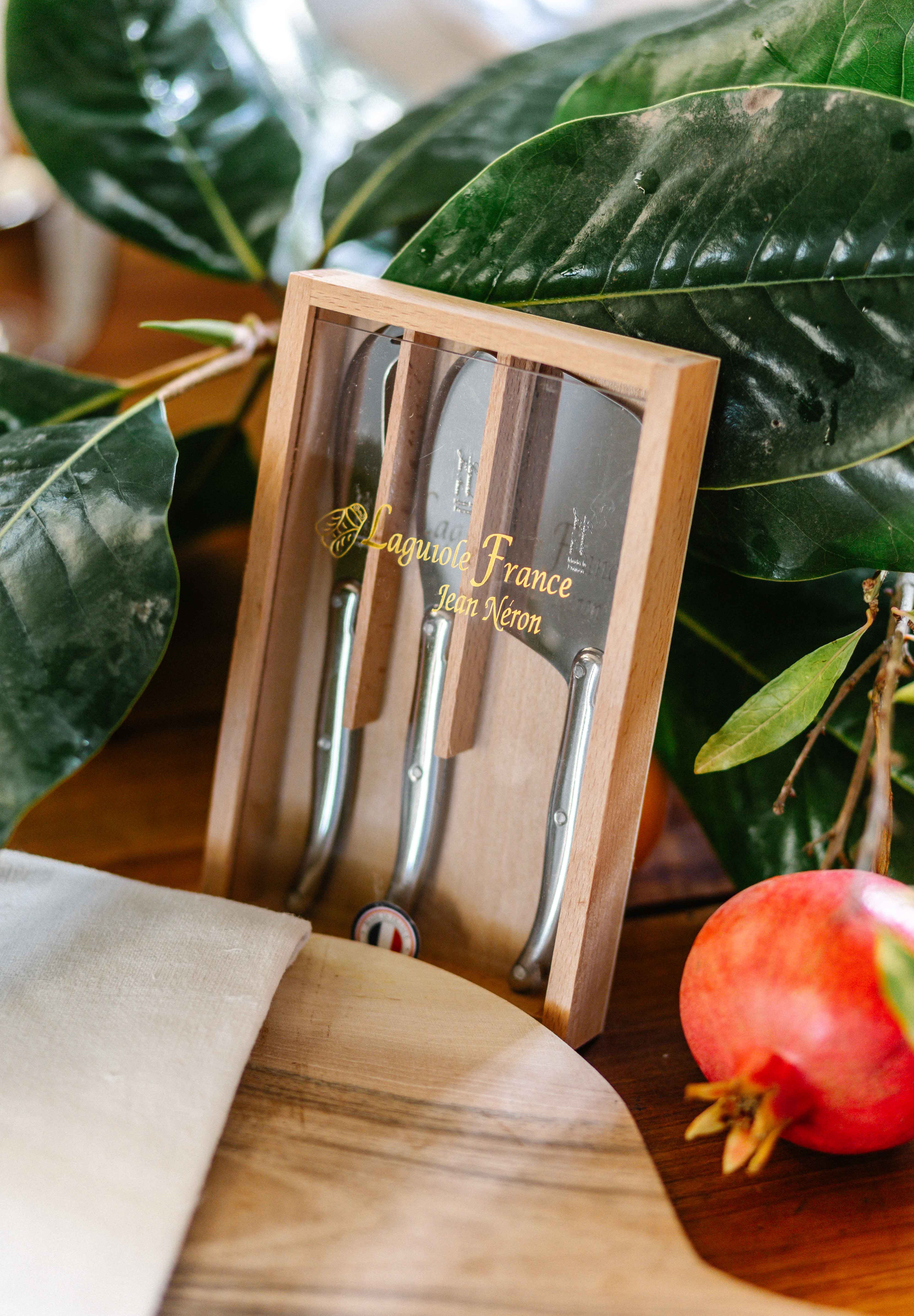 Laguiole Elegance: Cheese Knives & Walnut Cutting Board Set