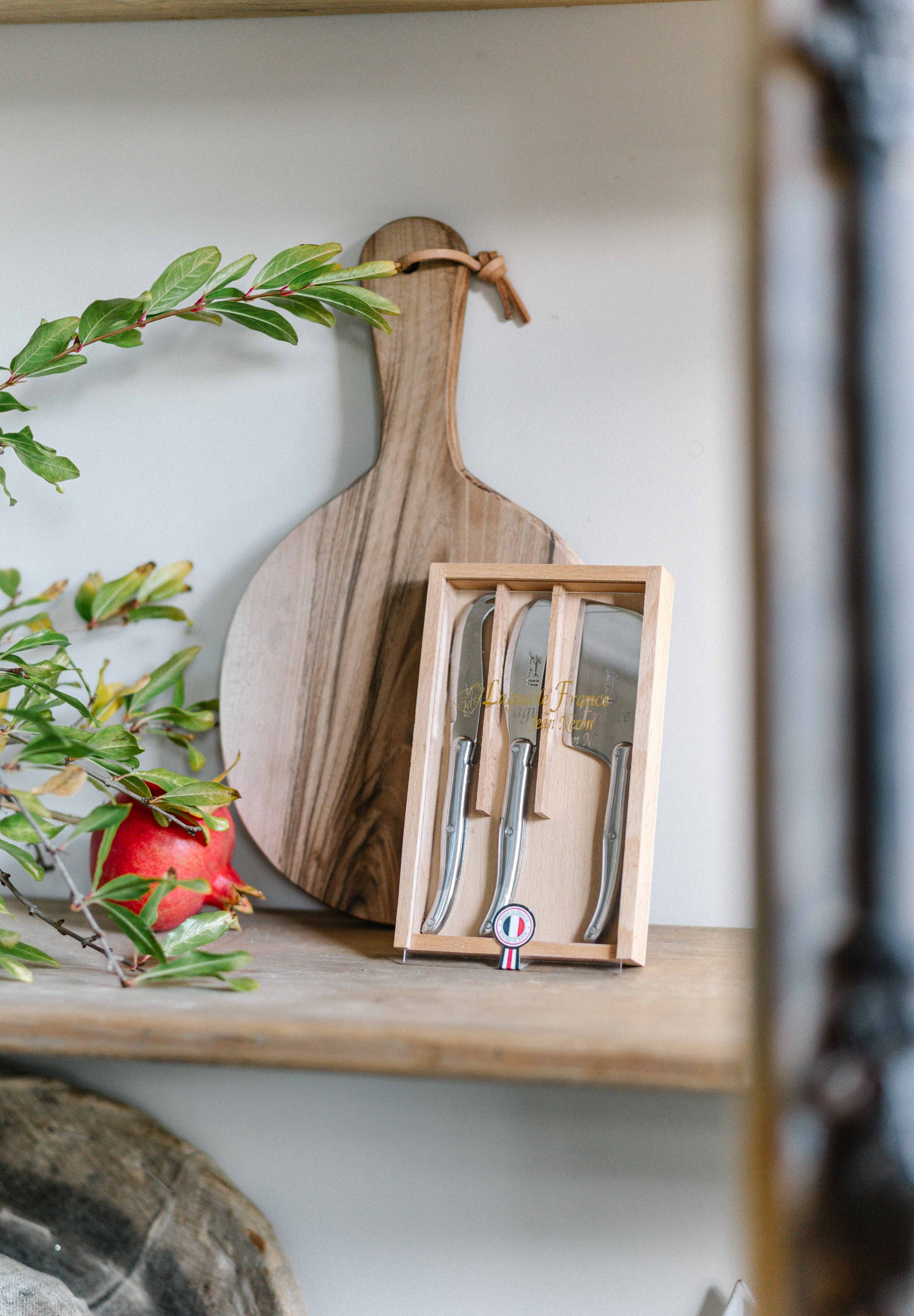 Elevate your holiday entertaining with our exquisite Laguiole Cheese Knives and Walnut Round Cutting Board Set. This stunning combination features beautifully crafted Laguiole knives, known for their exceptional quality and ergonomic design, perfect for slicing and serving a variety of cheeses. The accompanying walnut cutting board adds a touch of rustic elegance to your table, making it an ideal centerpiece for any gathering. Whether you're hosting a festive cheese platter or gifting to a culinary enthusiast, this set is sure to impress and delight.