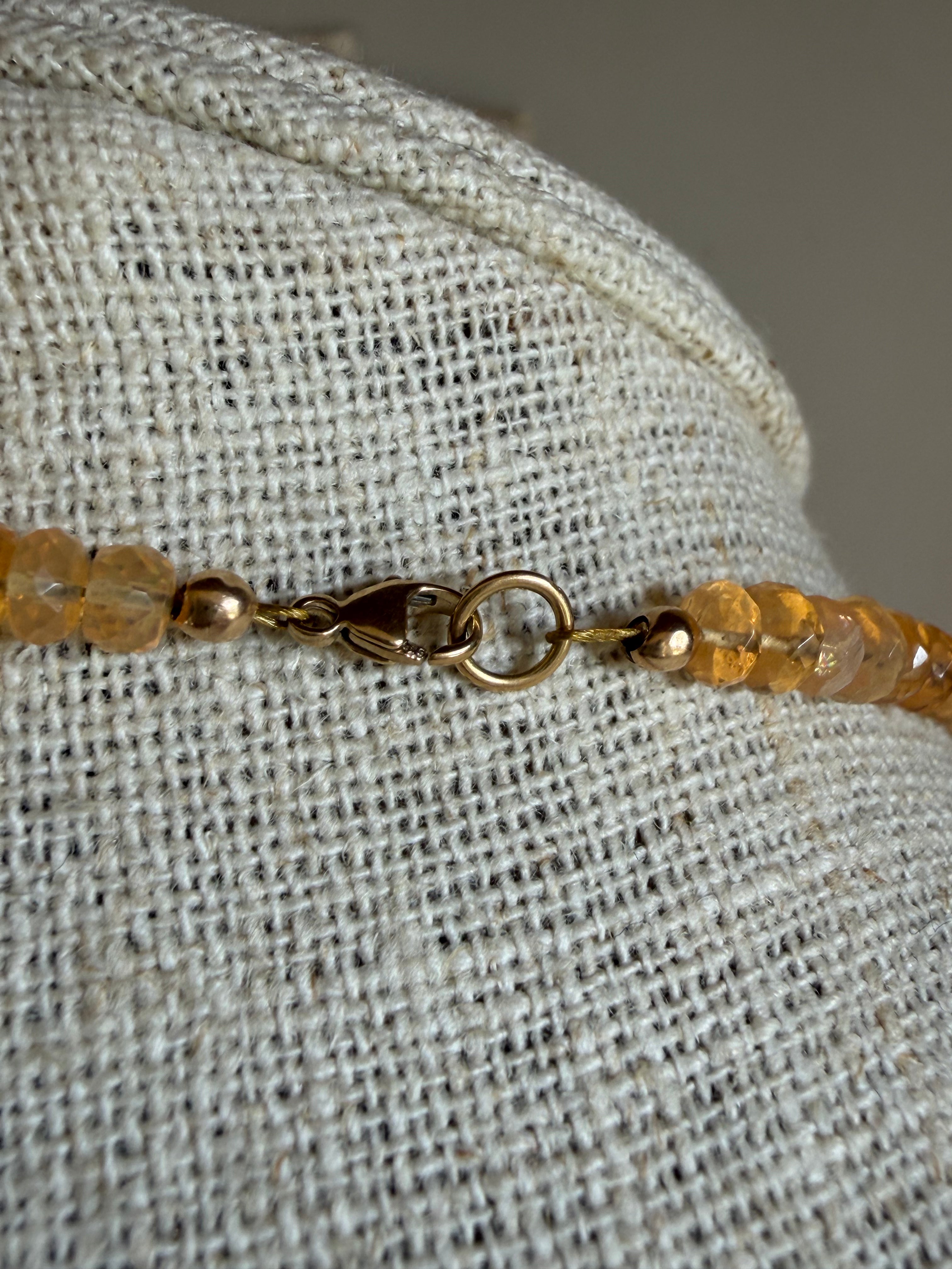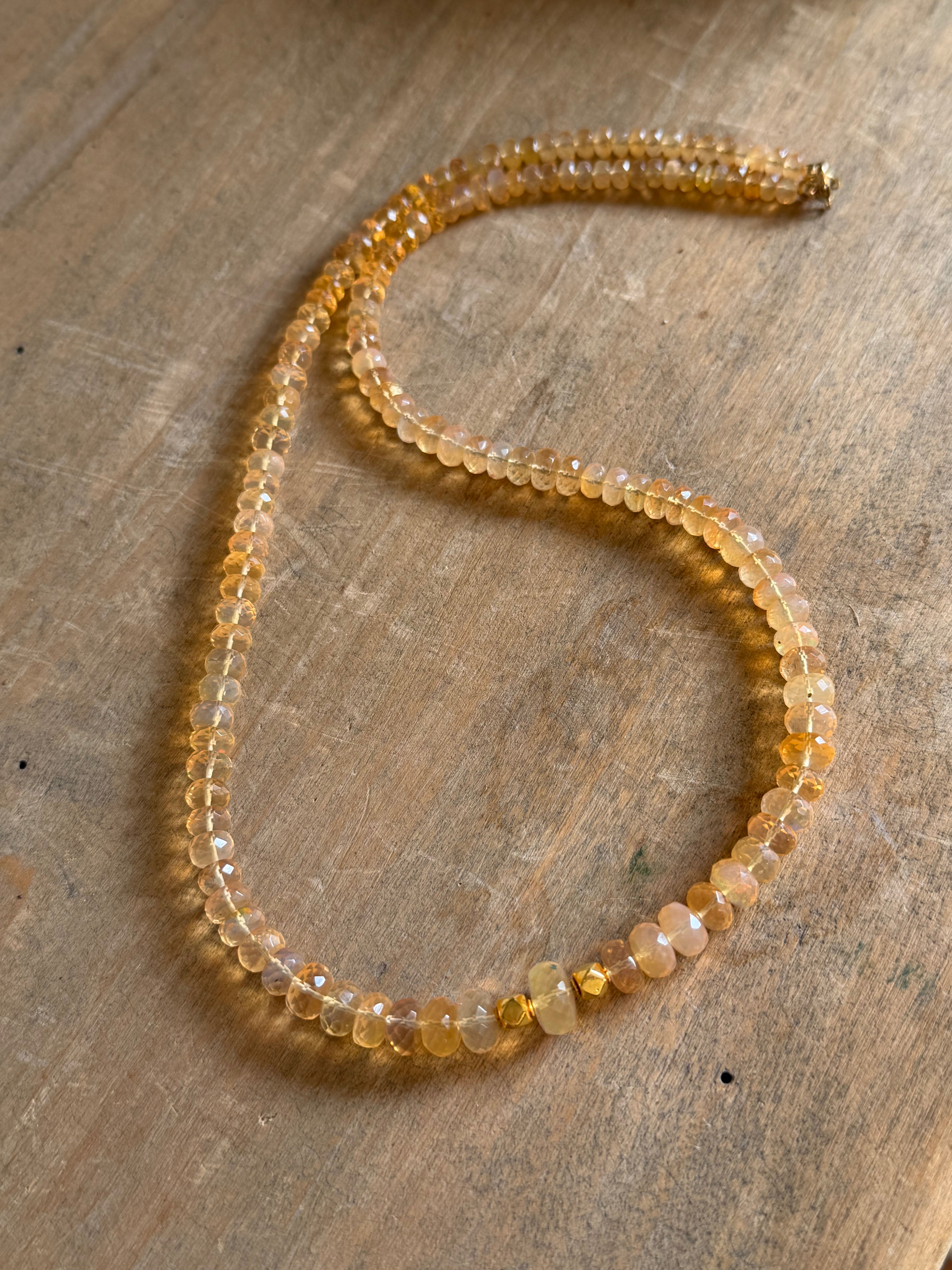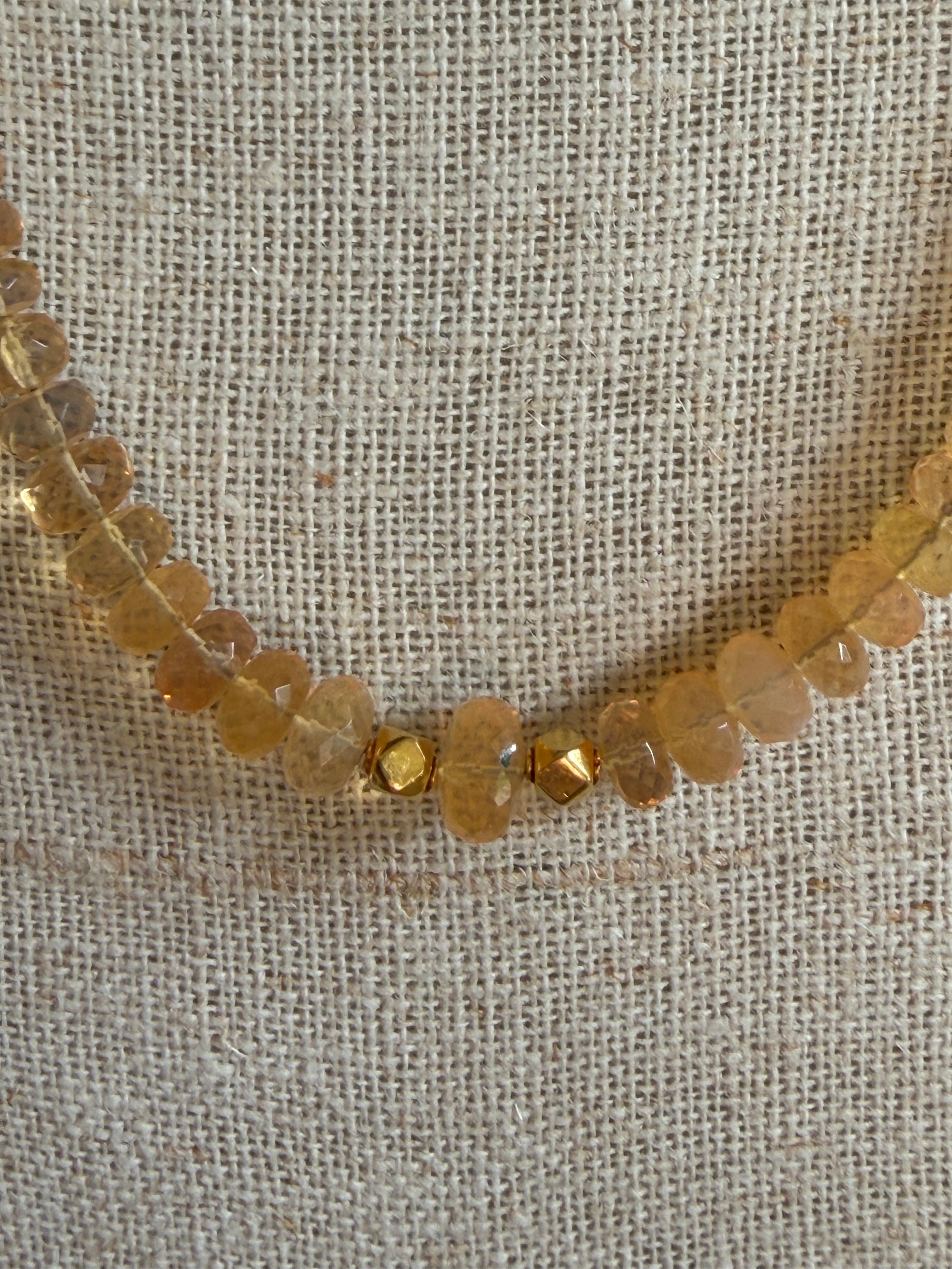 Handcrafted by a local Sonoma artist, this luminous necklace features faceted Mexican fire opal beads that catch the light with warm golden-orange brilliance. Each stone reflects the natural radiance and spirit of Sonoma, symbolizing creativity, renewal, and inner fire.