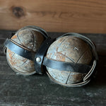 Condition: Excellent vintage condition, with natural wear and patina on both the balls and leather holder consistent with age.