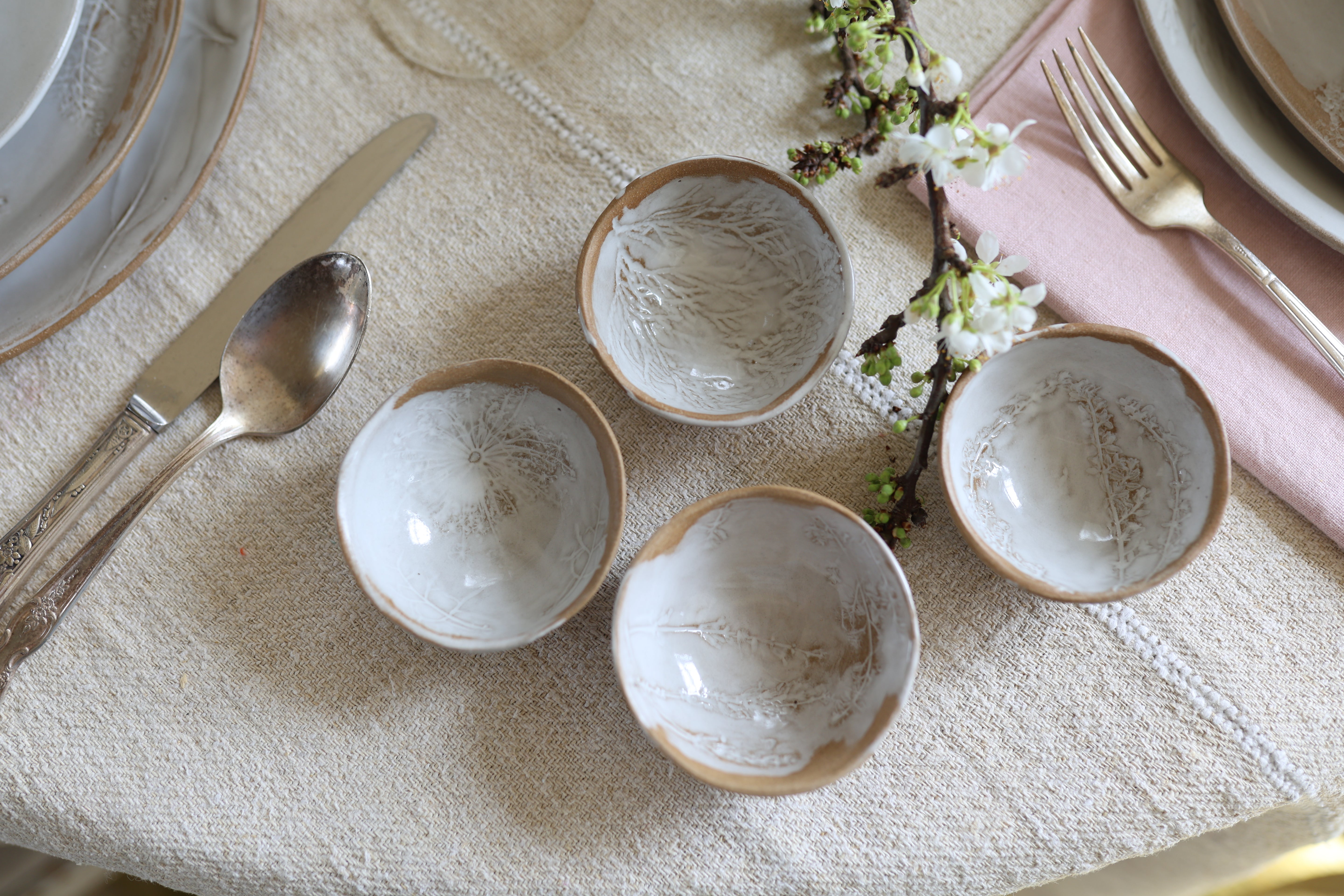 The botanicals are foraged at our 5th Street Farm, meticulously rolled into the clay and then fired two times in the kiln with the most gorgeous creamy glaze. Each piece is made by hand and one of a kind! It is part of our Chateau Sonoma Signature Dinnerware Collection. This is sure to elevate your dining experience and they are dishwasher safe.