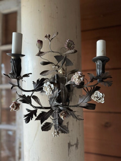 Sconces with Enamel Flowers