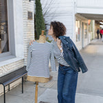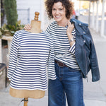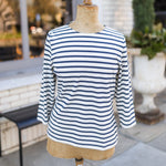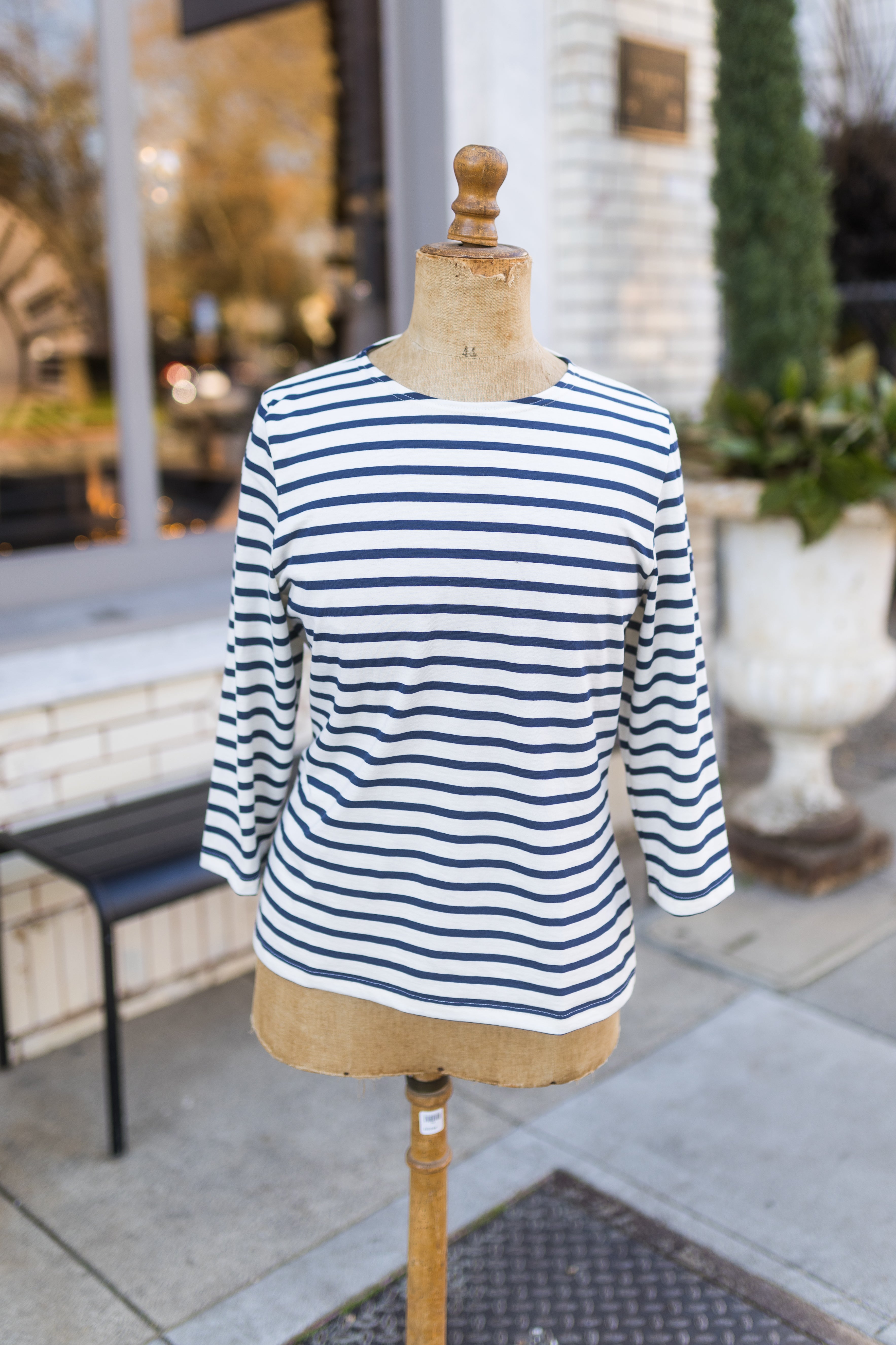 The quintessential French look! Dark blue stripes, 100% Cotton, 3/4 length sleeves, and round neckline. Inspired by the timeless maritime tradition, the St. James Mariner Shirt is the epitome of casual sophistication. Crafted from premium cotton, this shirt combines classic design with exceptional comfort. Featuring a traditional Breton stripe pattern, it offers a versatile look that works effortlessly with jeans or chinos for a relaxed yet refined style. The durable, breathable fabric ensures all-day comfort, while the relaxed fit gives it a laid-back, nautical vibe. Whether you’re out on the water or strolling through the city, the St. James Mariner Shirt is the perfect addition to your wardrobe.