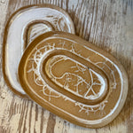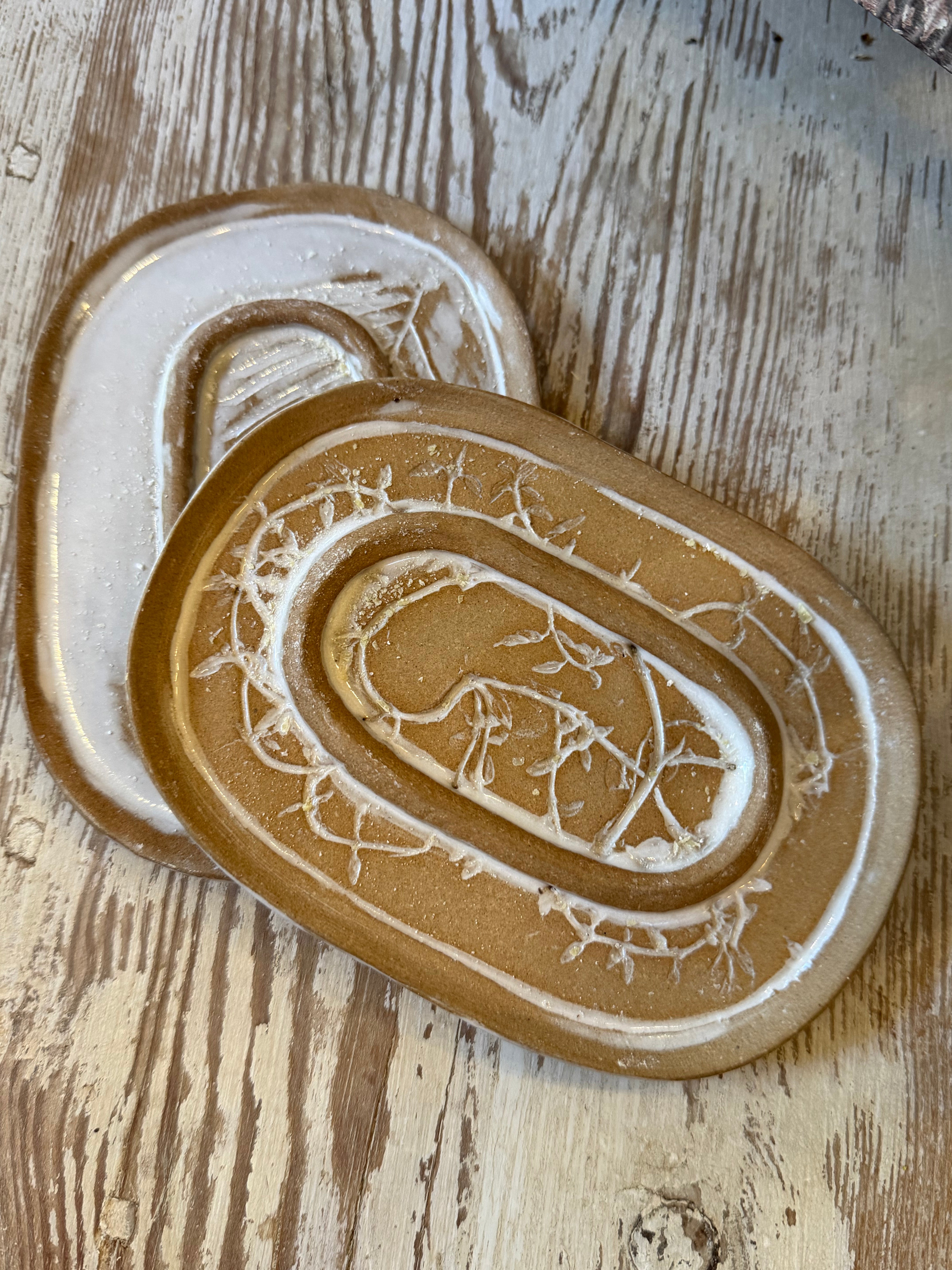 We love these soap dishes that a part of our Botanical Chateau Sonoma Collection. The botanicals are foraged at our 5th Street Farm, meticulously rolled into the clay and then fired two times in the kiln with the most gorgeous creamy glaze. Each piece is made by hand, one of a kind and dishwasher safe.