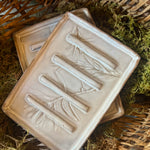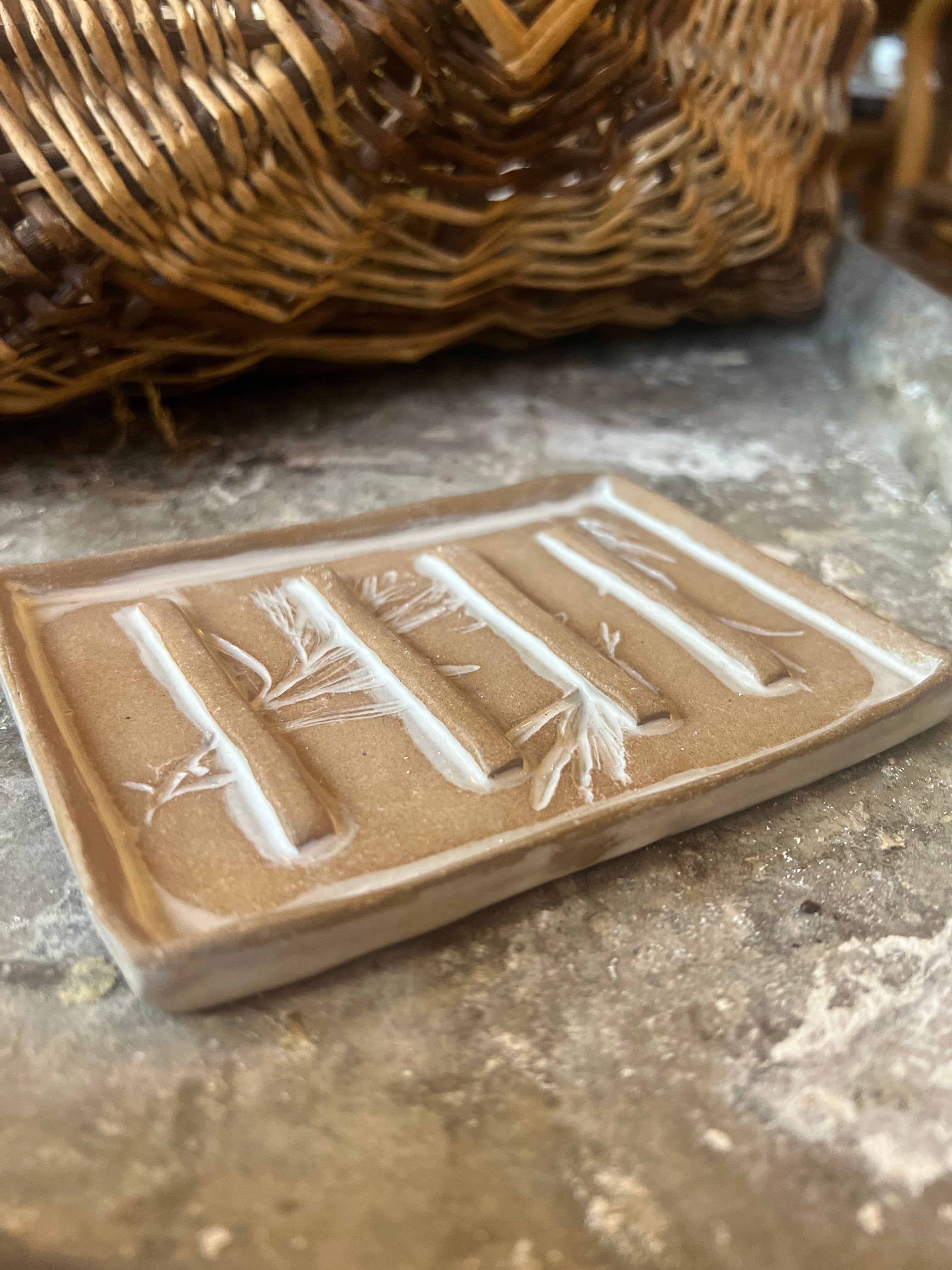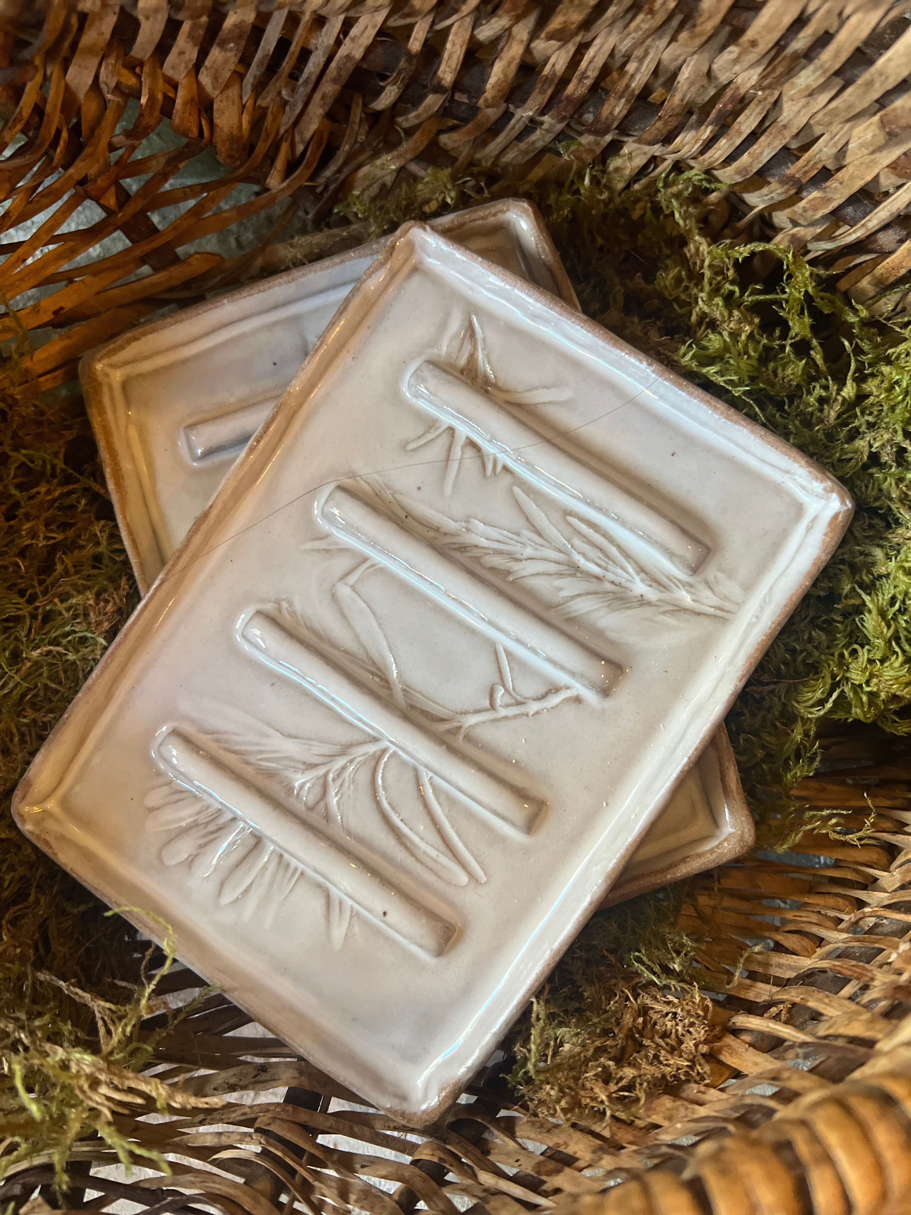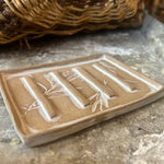 We love these soap dishes that a part of our Botanical Chateau Sonoma Collection. The botanicals are foraged at our 5th Street Farm, meticulously rolled into the clay and then fired two times in the kiln with the most gorgeous creamy glaze. Each piece is made by hand, one of a kind and dishwasher safe.