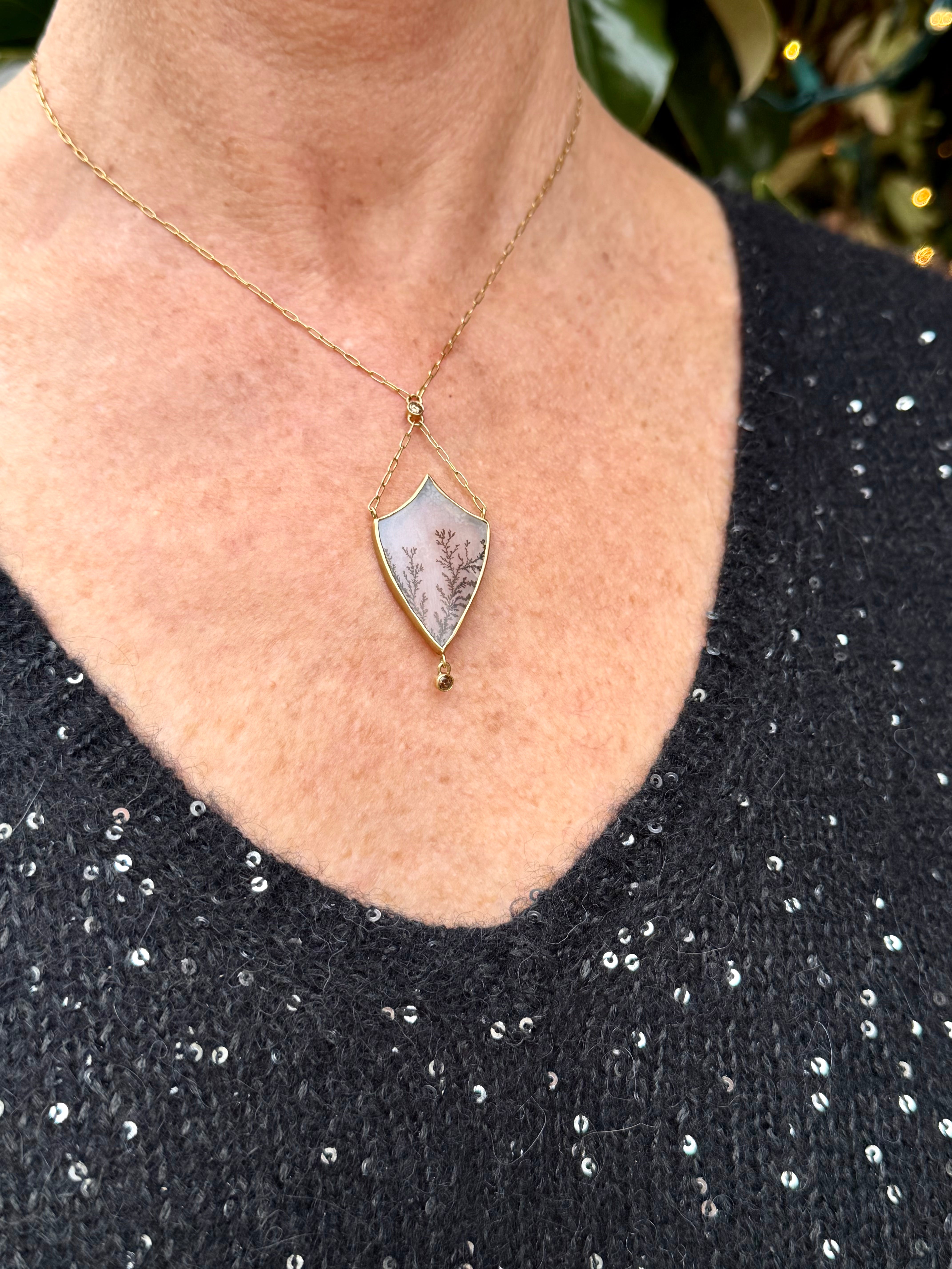 Necklace Dendritic Agate Shield Cognac Diamond Drop