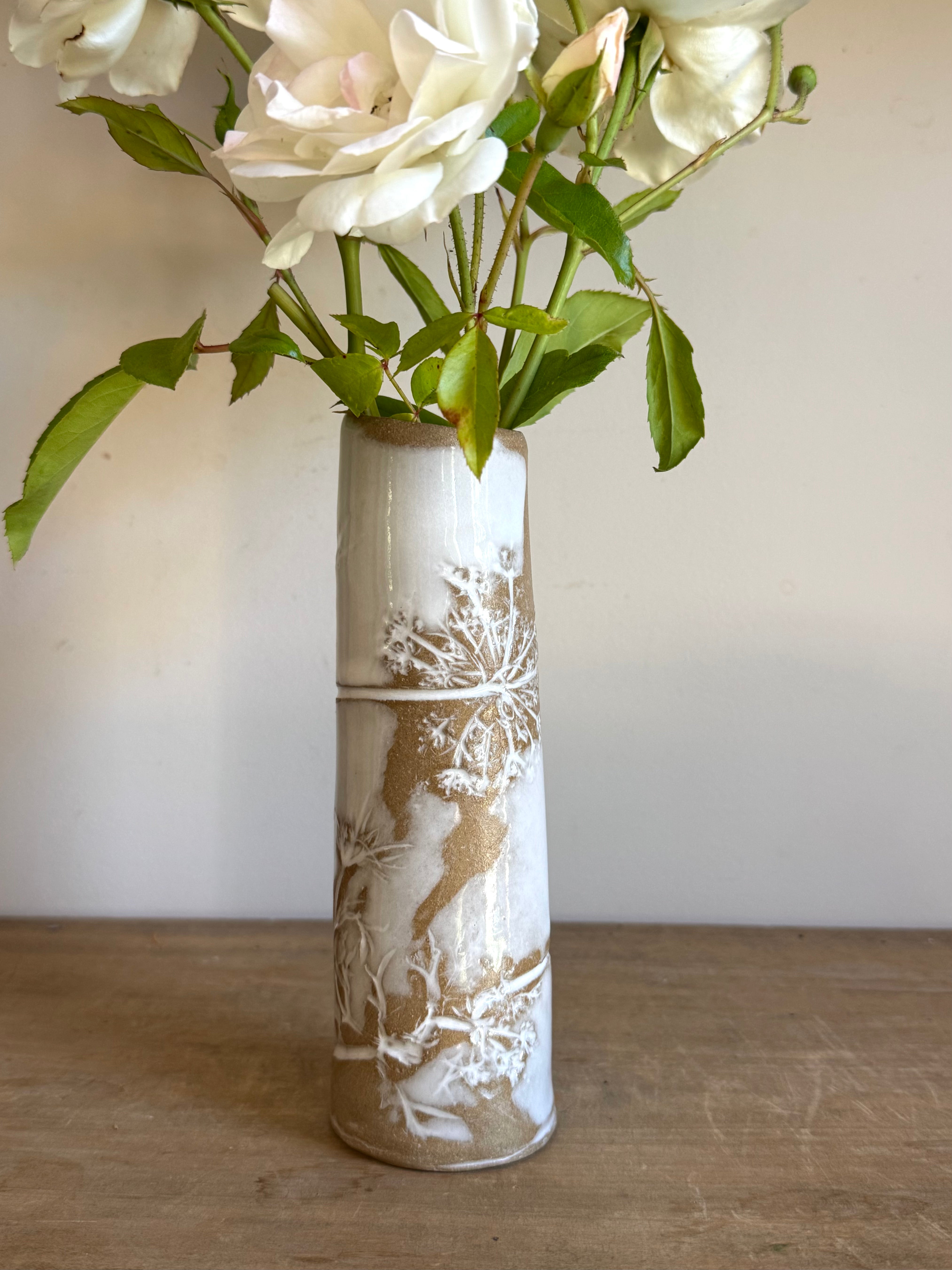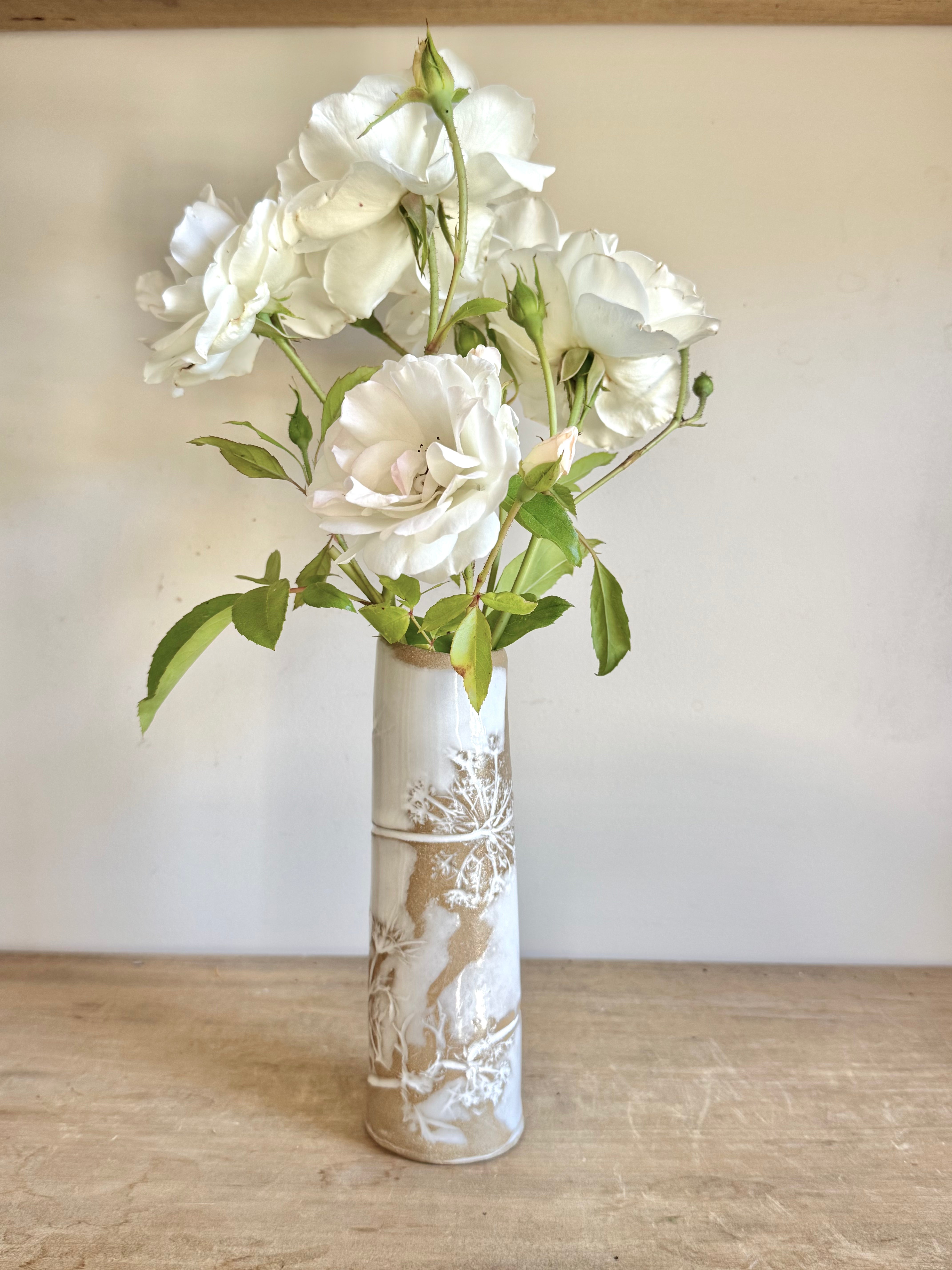 The botanicals are foraged at our 5th Street Farm, meticulously rolled into the clay and then fired two times in the kiln with the most gorgeous creamy glaze. Each piece is made by hand and one of a kind! It is part of our Chateau Sonoma Signature Dinnerware Collection. This is sure to elevate your dining experience and they are dishwasher safe.